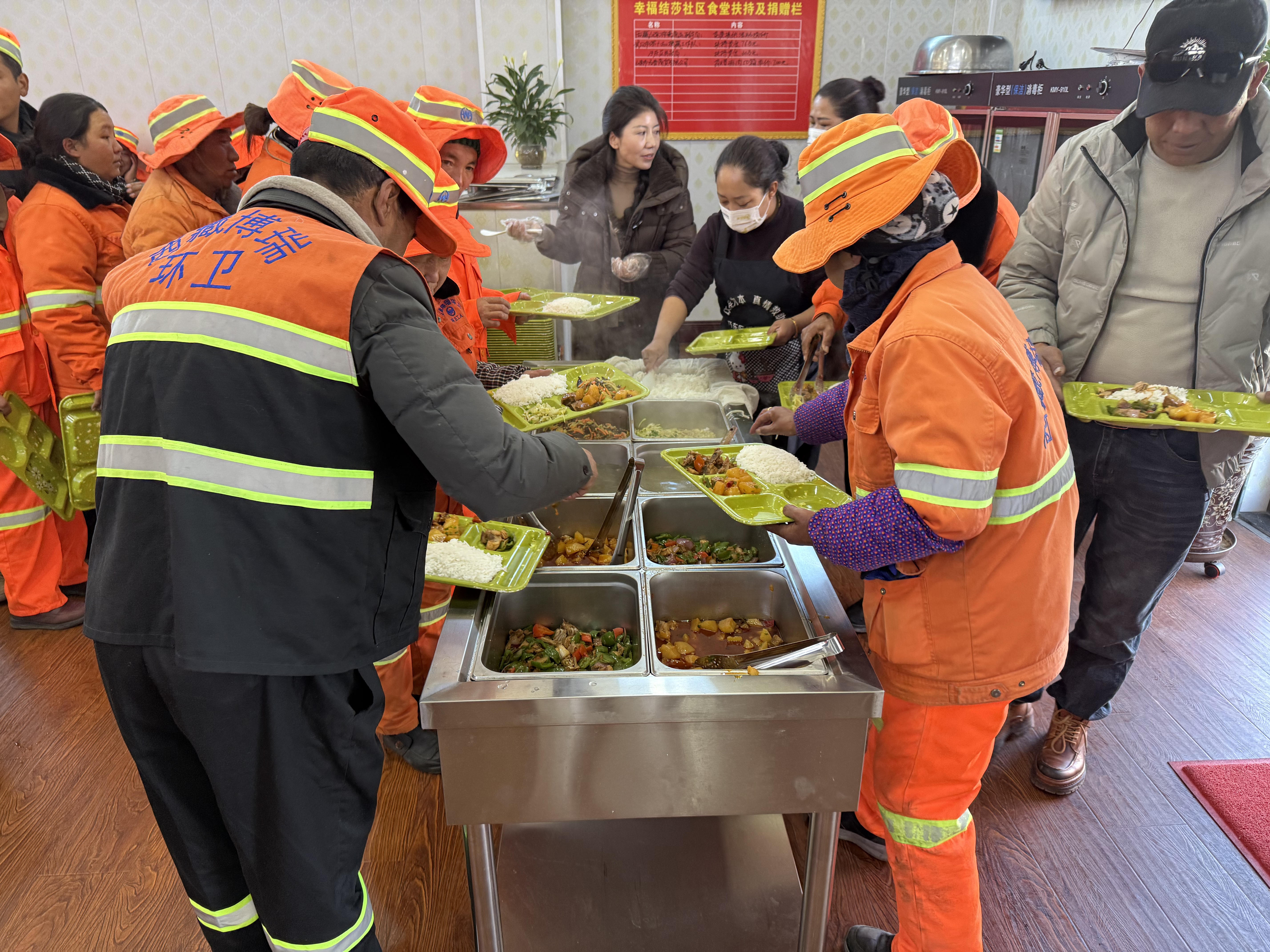 针对老年人“吃饭难”,食堂提供差异化惠民政策;针对外卖骑手、户外工作者,提供便宜就餐和休息场所。每逢传统节日,这里还会组织“饺子宴”“敬老宴”,各族居民聚在一起,汉族的饺子、藏族的酥油茶,在热腾腾的烟火气里交融。